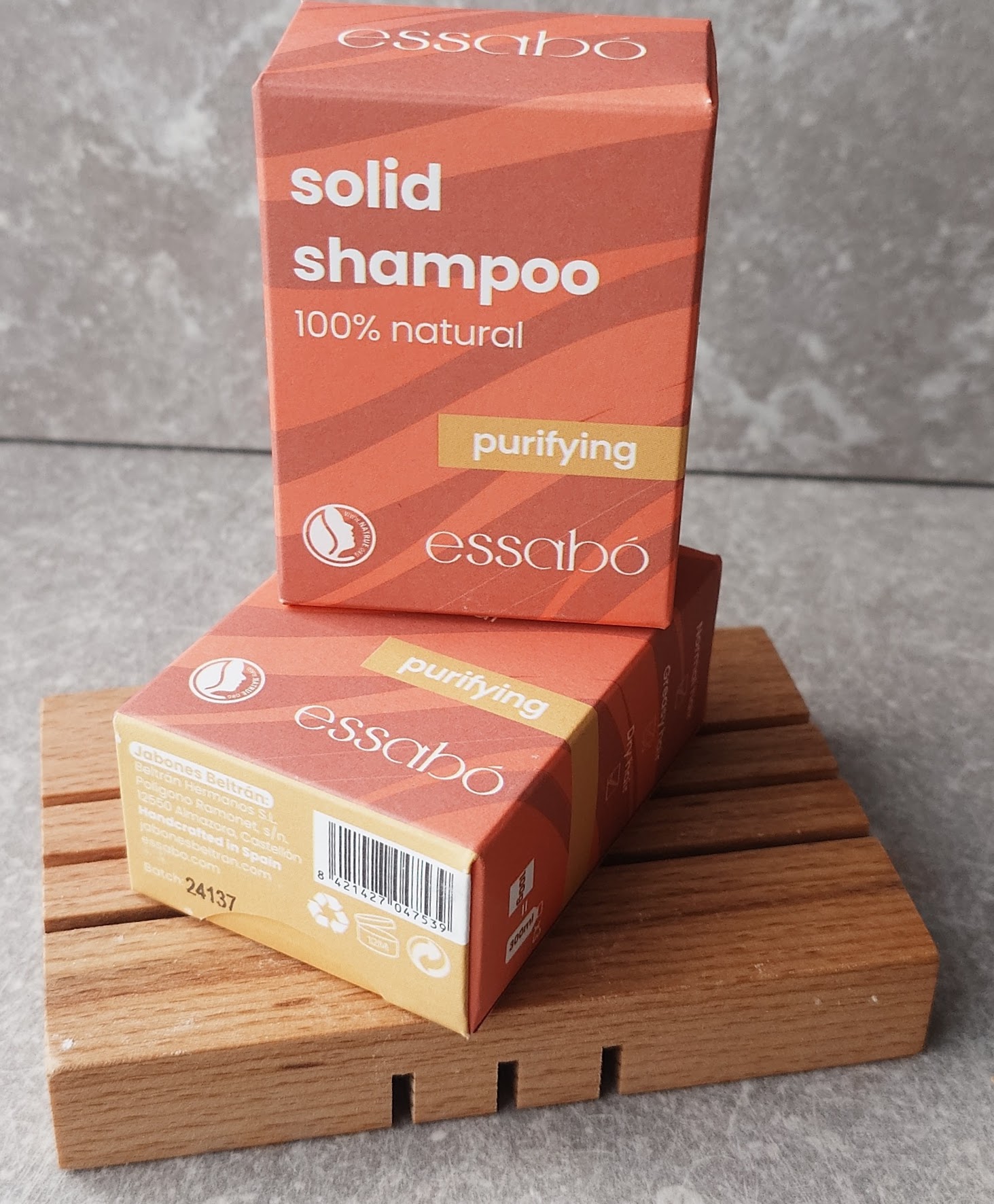 Essabó Purifying Shampoo är ett 100 % naturligt, fast schampo som är perfekt för fett hår . Tack vare dess formula, berikad med granatäppleolja, röd lera och olivolja, kommer du inte att se överflödig olja i håret.