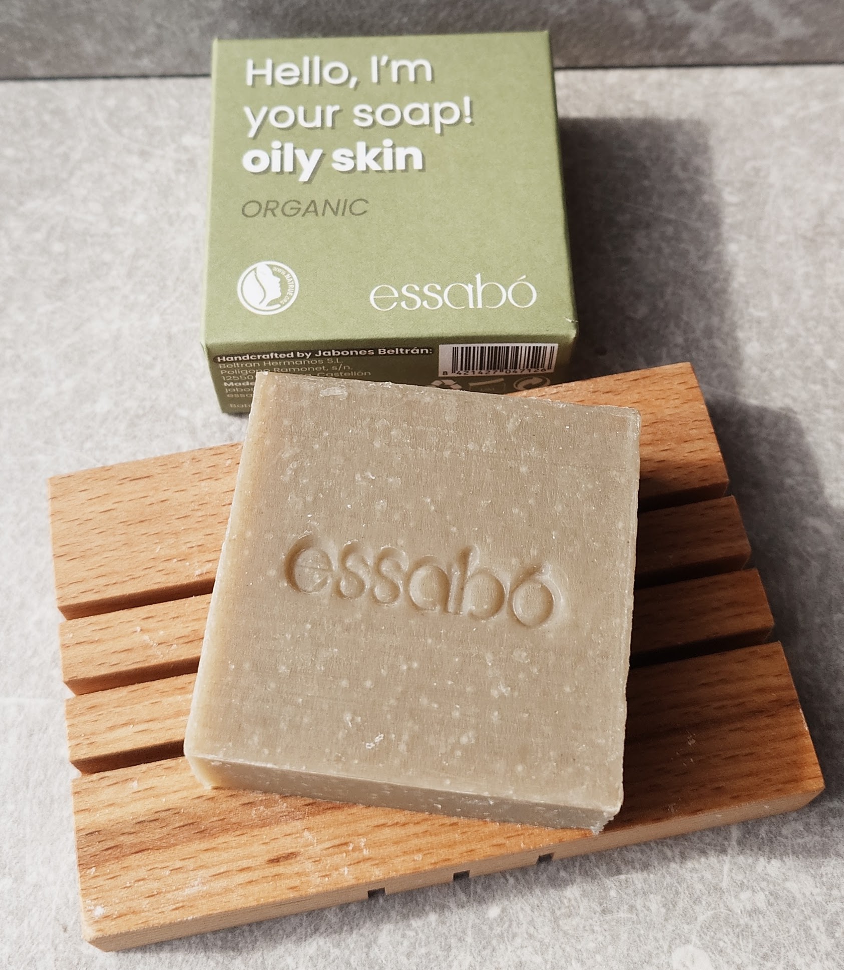Essabó för fet hud är en tvål speciellt framtagen för personer med fet hud och/eller akne. Den är berikad med certifierad grön lera. Grön lera reglerar naturligt fett och hjälper till att undvika att huden blir för fet. Basen är gjord med ekologisk kokosolja och olivolja från spanska biologiska grödor.