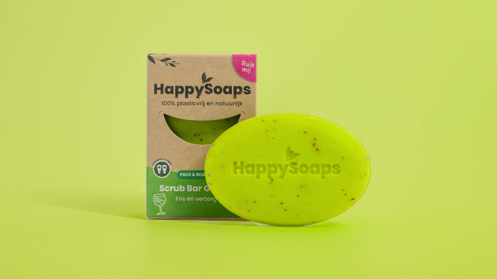 HappySoaps produkter är 100 % plastfria och innehåller inga mikroplaster. Deras produkter förpackas i återvunnen papp.