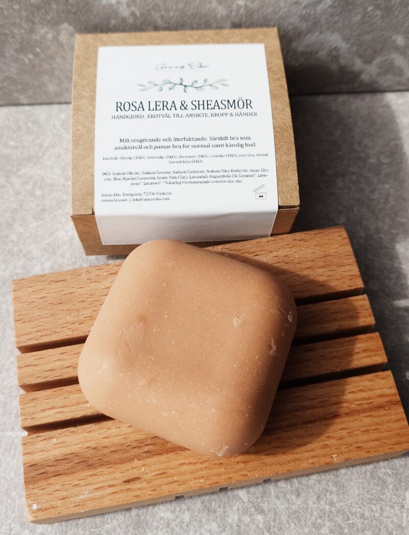 Handgjord Tvål – Rosa Lera & Sheasmör från Annas Eko – 70 g