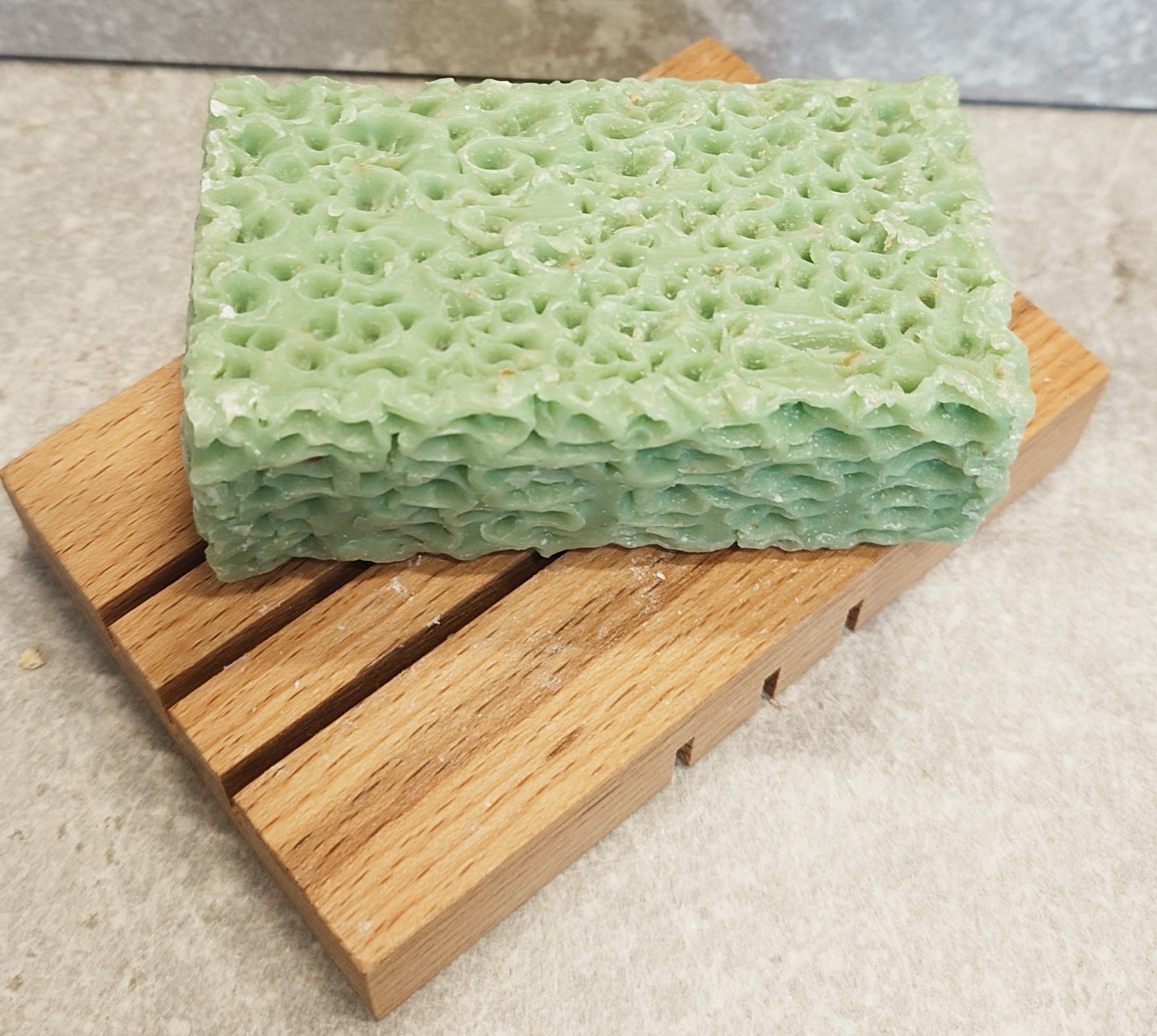 En härlig skrubbtvål med rispulver och vetekli, ca 140g. Tvålen ger en mjuk och len känsla från en mild peeling.