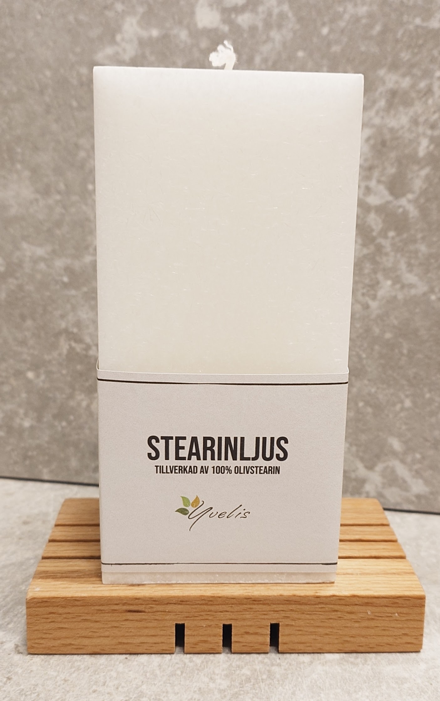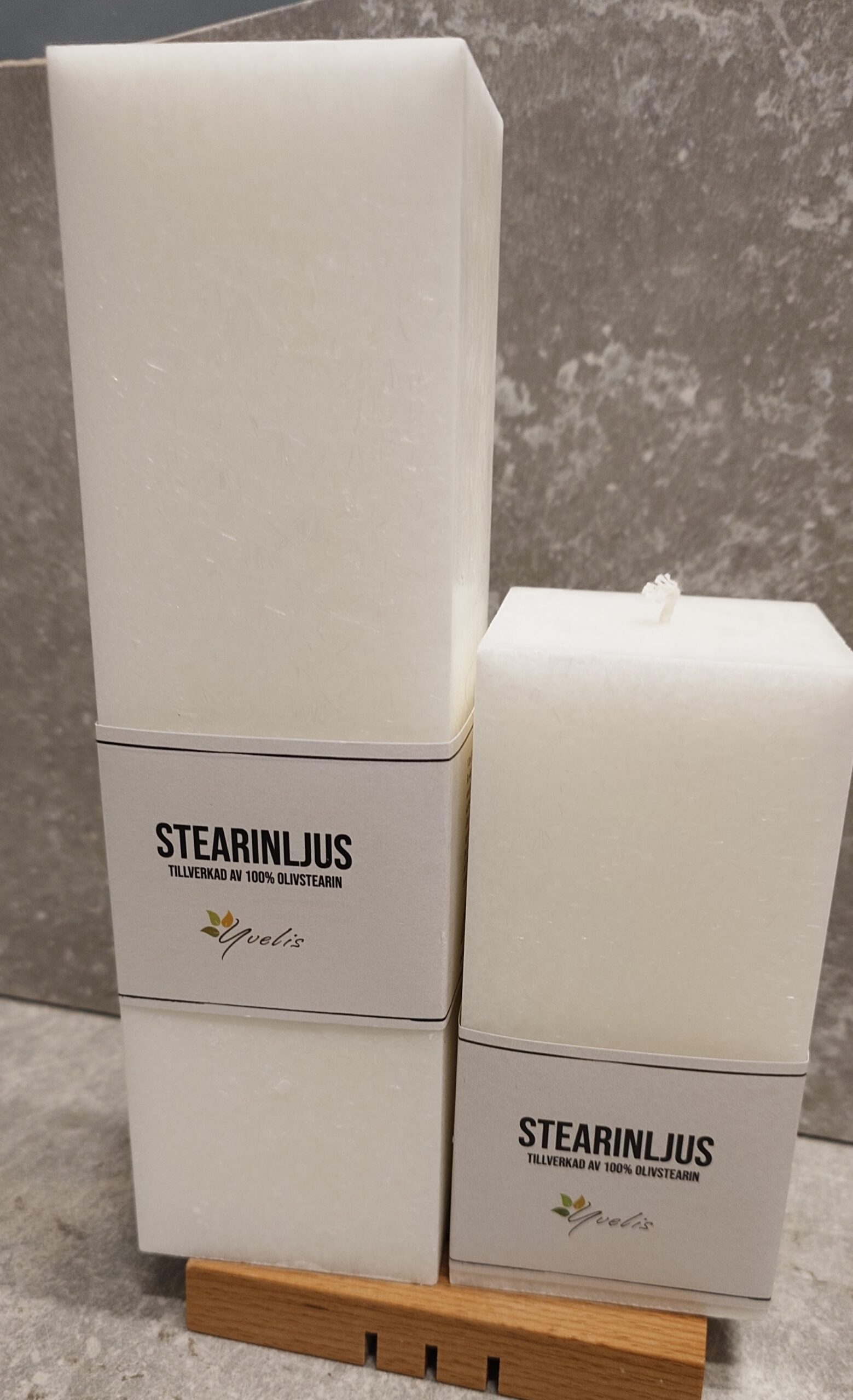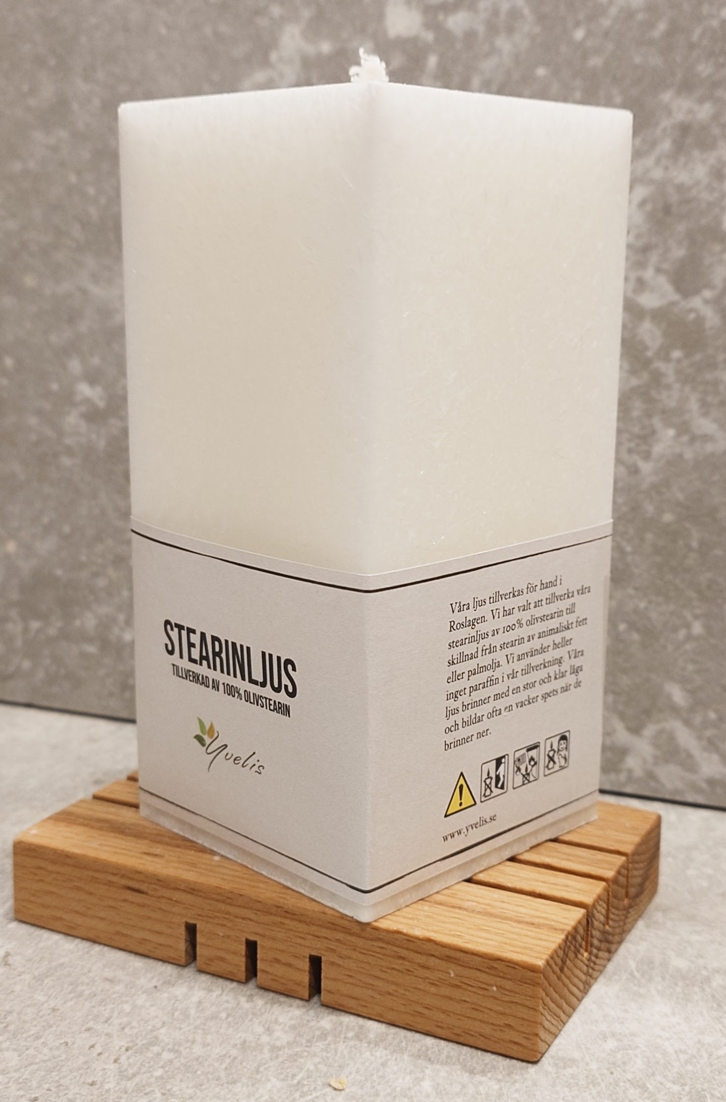 Handgjorda blockljus av 100% olivstearin. Olivstearin tillverkas av olivolja till skillnad från ”vanligt stearin” som oftast tillverkas av animaliskt fett och/eller palmolja. Vi tillsätter heller inget paraffin.